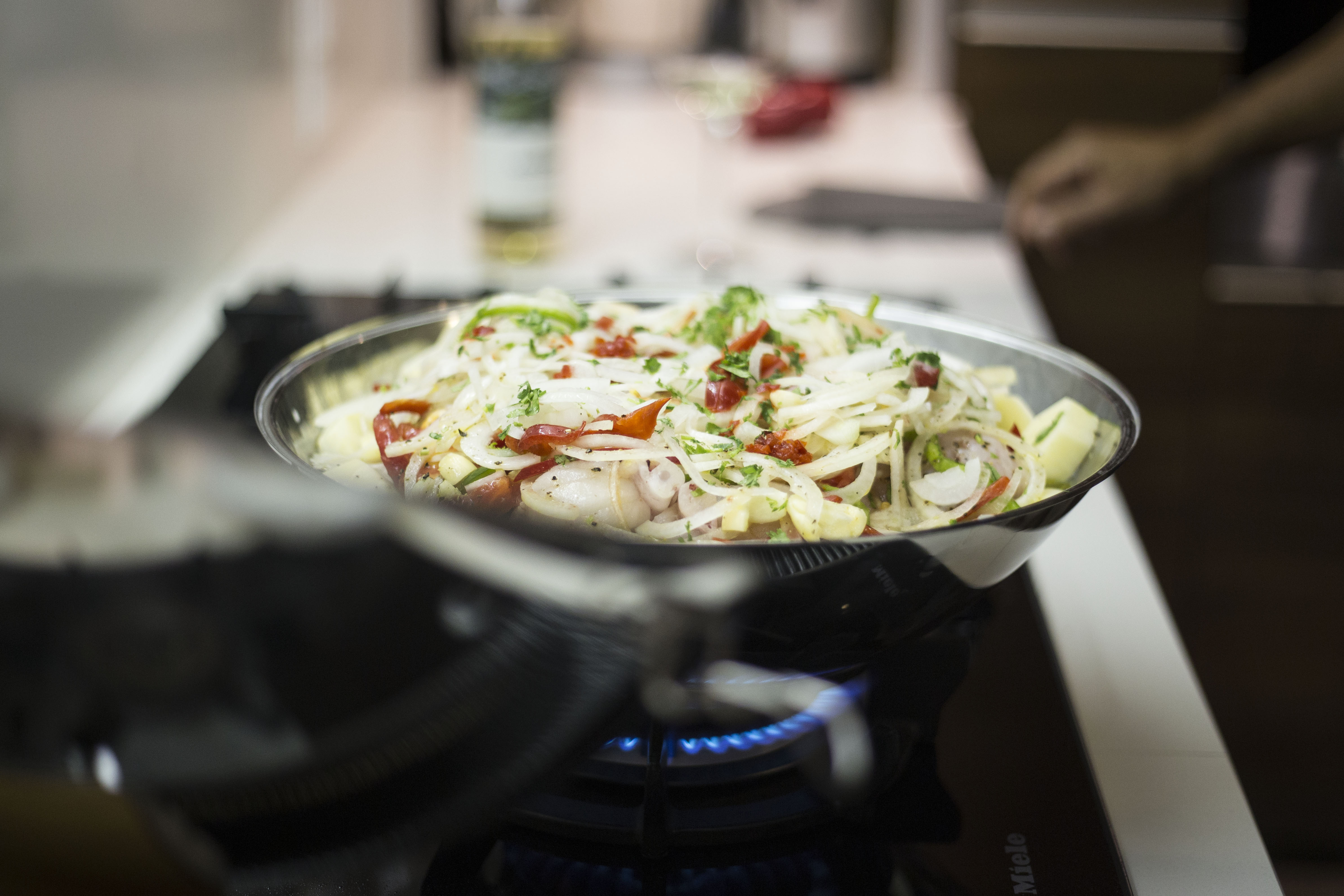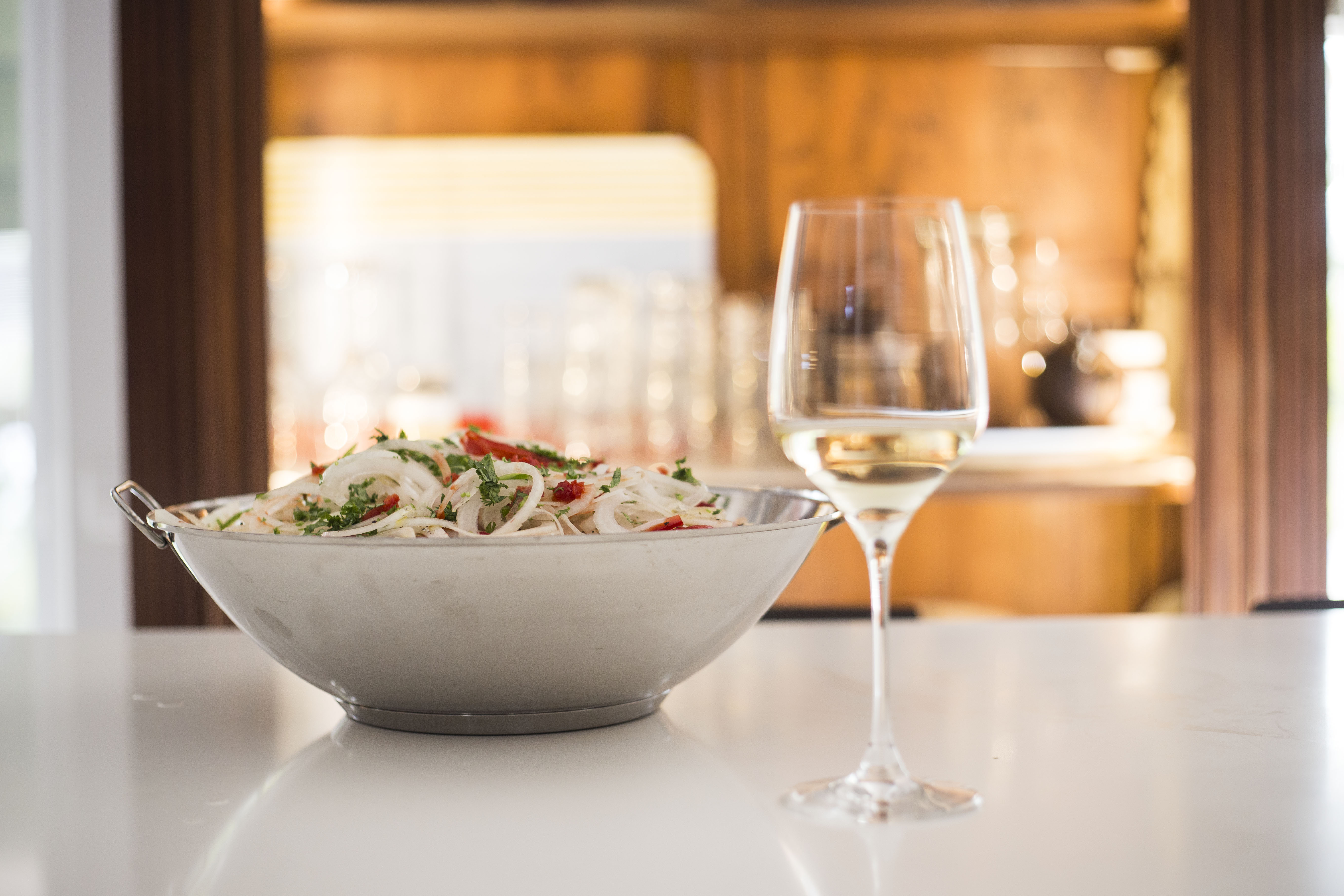 Em Faro, encontrámo-nos com o Carlos, um controlador aéreo que todas as sextas-feiras convida os amigos para jantar em sua casa. Gosta de cozinhar brincar com sabores e esta noite, aceitou o nosso desafio de descobrir melhor o Assobio Branco e combiná-lo com uma refeição. Com o mar ali tão perto, a escolha foi fácil – a Cataplana Algarvia deu o mote para um serão entre amigos com sabores que viajam do Algarve ao Douro.
