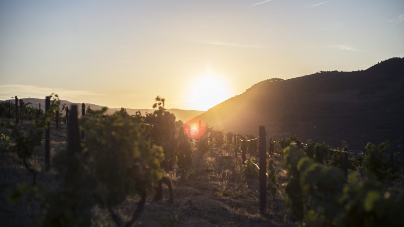 O alto do monte a Oeste da Quinta dos Murças é o ponto perfeito para ver o Pôr-do-Sol. A chuva acabou por dar uma certa frescura à brisa de fim de tarde e a mistura de aromas é incrível. Sente-se o doce das flores silvestres e medronhais misturado com a resina dos pinheiros e os aromas térreos da madeira e vegetação rasteira. Curiosamente, algumas destas notas espelham-se nos oito terroirs da quinta, visto existir uma estreita relação entre solos vivos e variados em combinação com todas as variantes deste ecossistema de espécies e habitats, e com as castas e diferentes idades das vinhas de Murças.